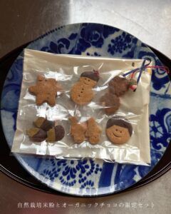 自然栽培米粉のクッキー6種入りの詰め合わせセット。有機クーベルチョコがけでチョコも美味しい。