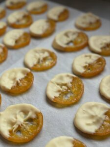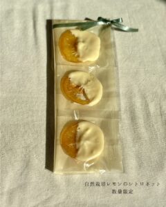 丁寧にアク抜きしたレモンに、じっくり時間をかけて砂糖を含ませたものにホワイトチョコレートをコーティングしました。