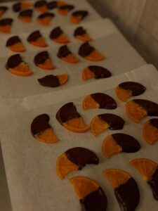 毎年大人気の太陽さんさんと浴びた無農薬オレンジをゆっくりゆっくり時間をかけて砂糖を煮含ませてオーガニッククーベルチュールチョコをかけたオランジェット。ホール3枚入り