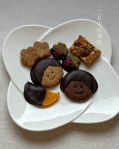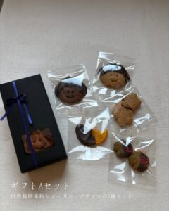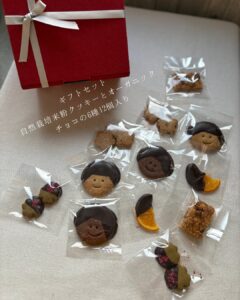 自然栽培米粉のクッキー6種12個入りの詰め合わせセット。有機クーベルチュールチョコをたっぷり使ったグルテンフリーで可愛いおかっぱいり。